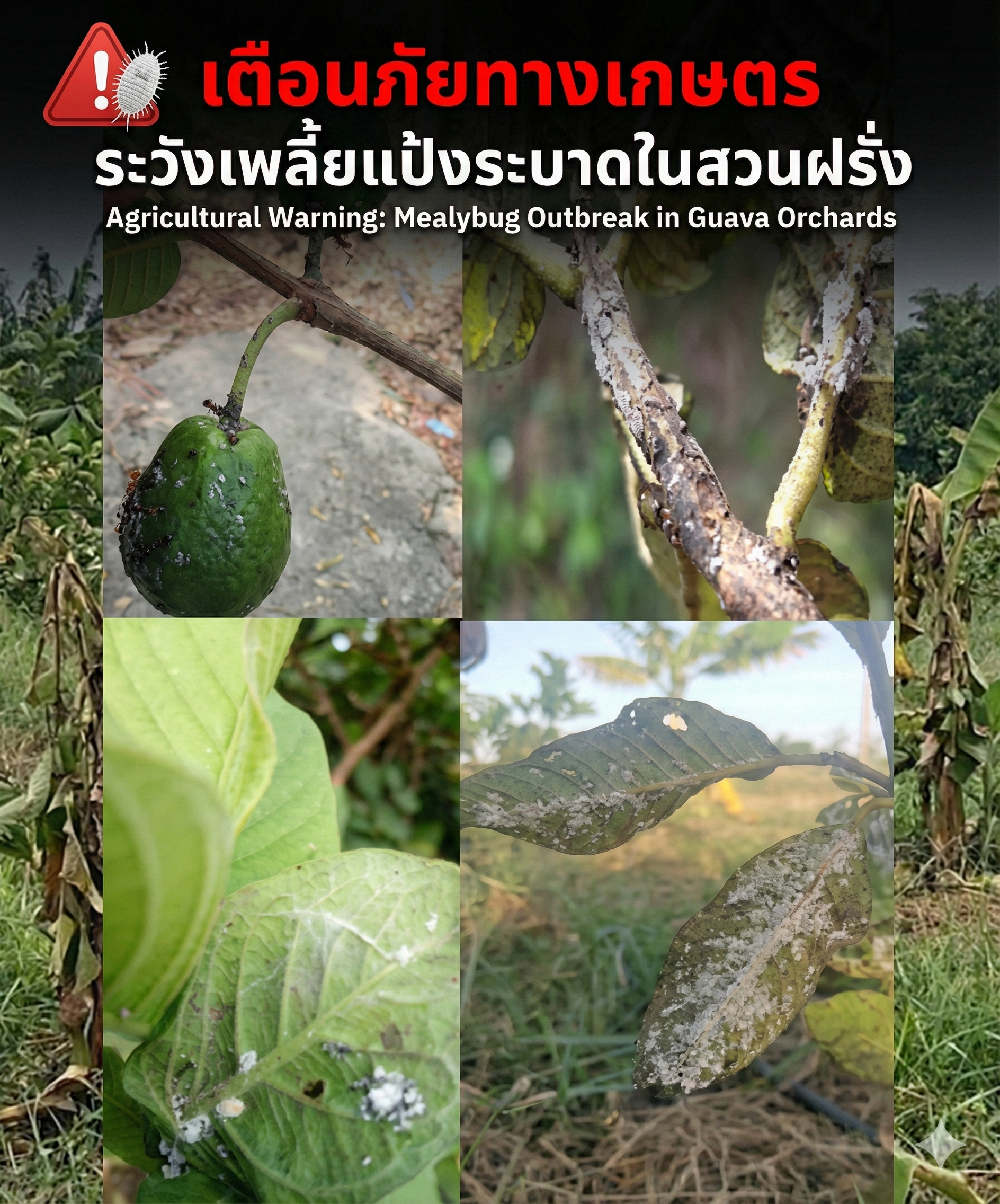 อ่านต่อ - 🚨 แจ้งเตือนภัยทางการเกษตร ระวังเพลี้ยแป้งระบาดในสวนฝรั่ง
