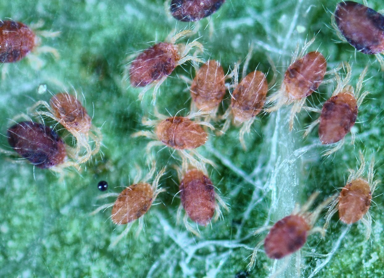ไรแมงมุมคันซาวา ชอบอยู่ ใต้ใบ สร้างเส้นใยคลุม ระบาดรุนแรงจะทำให้ใบไหม้ ขาดเป็นรู และร่วงตายทั้งแปลง