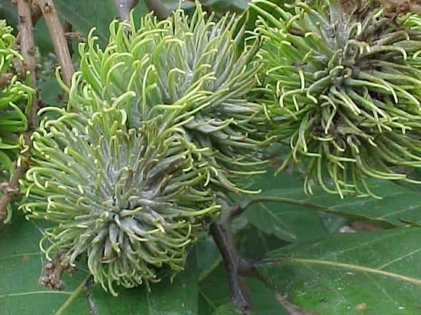 - ใบมีแผลฉ่ำน้ำ รูปเหลี่ยมตามแนวเส้นใบ