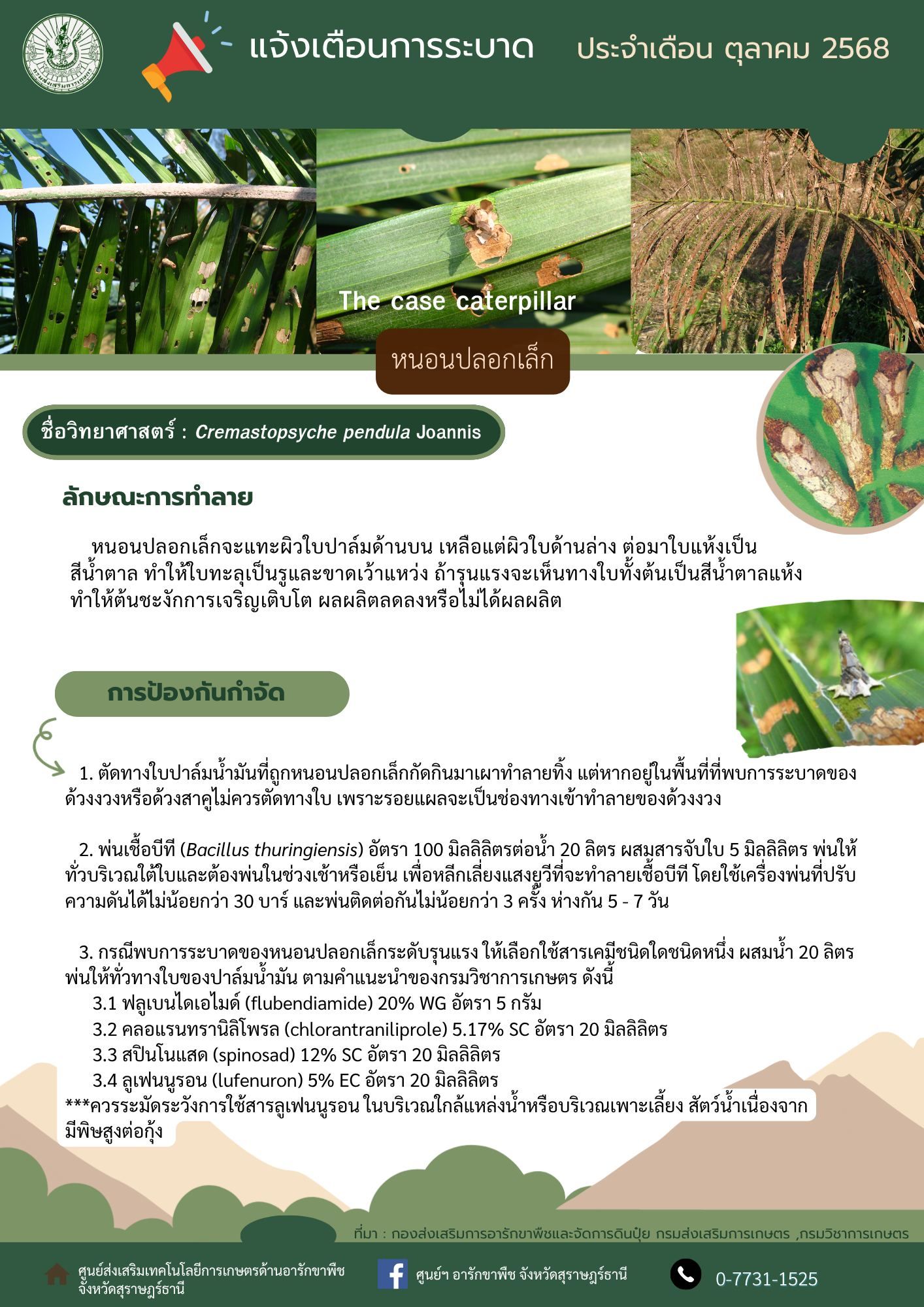 อ่านต่อ - 📢 แจ้งเตือนเกษตรกรชาวสวนปาล์มน้ำมัน เฝ้าระวังการระบาดของหนอนปลอกเล็ก