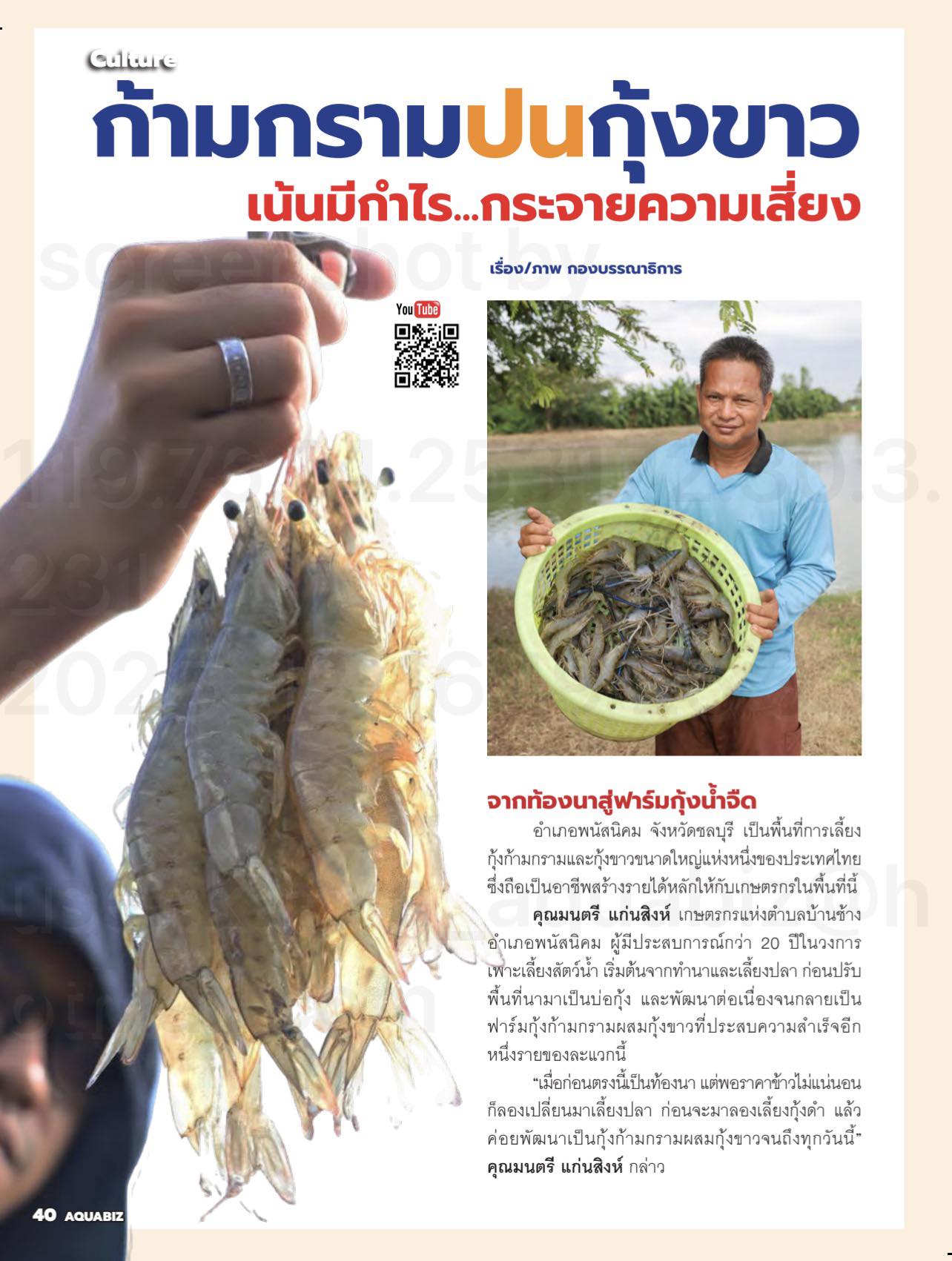 ในยุคที่การเลี้ยงกุ้งขาวเพียงอย่างเดียวมีความเสี่ยงสูง ทั้งเรื่องโรคและราคาที่ผันผวน การเลี้ยงแบบผสมผสาน สไตล์คุณมนตรี แก่นสิงห์ เกษตรกรมือโปรจากพานทอง-พนัสนิคม คือคำตอบที่ช่วยให้เกษตรกรอยู่รอดได้นานกว่า 20 ปี